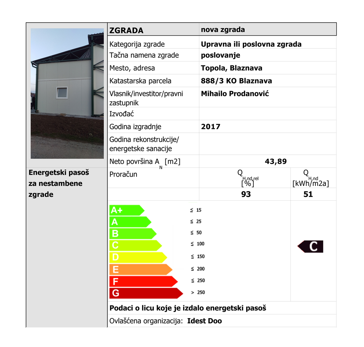 Kratak opis: Energetski pasoš za rashladno skladište